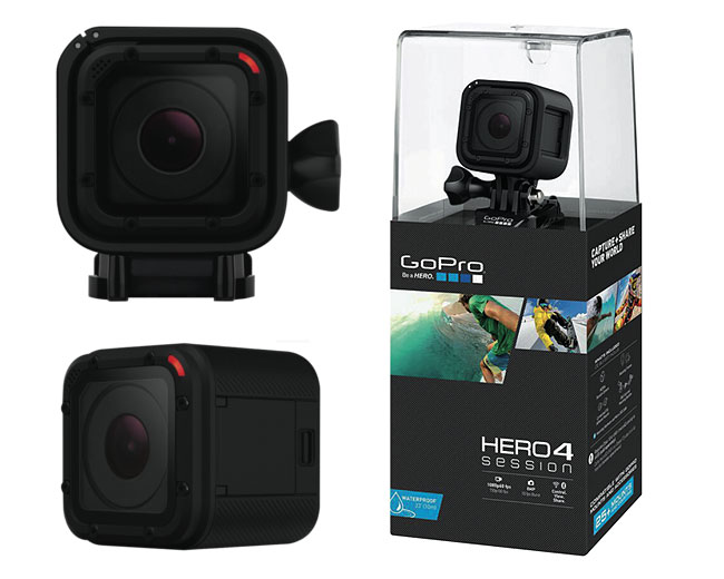 GoPro Hero4 Session Model: GPCHDHS-101 The super small GoPro HERO4 Session is half the size and 40% lighter than the HERO4 Silver, and its waterproof to 10m so captures your surf and snow sessions without needing extra protection. SuperView mode captures the worlds most immersive wide-angle view so you get more in every shot, and Auto Low Light automatically chooses the frame rate for the best photos and videos in all lighting conditions. It takes 8MP photos, Burst photos at 10 frames per second, Time Lapse photos at set intervals from 0.5 to 60 seconds, and lifelike 1440p30 and 1080p60 videos with exceptionally smooth slow-motion playback. The camera automatically uses the front or back microphone for wind-reduced audio, and you can HiLight Tag footage while recording to find it faster later. It has in-built Wi-Fi and Bluetooth so you can use the GoPro app to view and share your content online, and remotely control the camera with your phone or tablet. The HERO4 Session is so small and you'll be so stoked. Additional Features: Auto Low Light HiLight Tag Waterproof to 10m