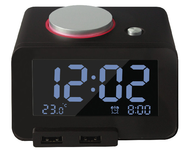 The black GVA Alarm Clock with Dual USB Charger is a compact hi-tech clock that makes life easier and it comes with a one-year manufacturers warranty.